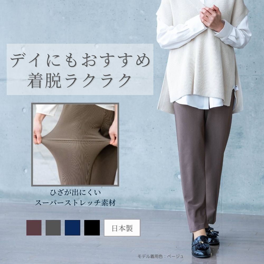 シニアの方に大人気!いつでもどこでも気軽に穿けるお洒落なスリムパンツ。