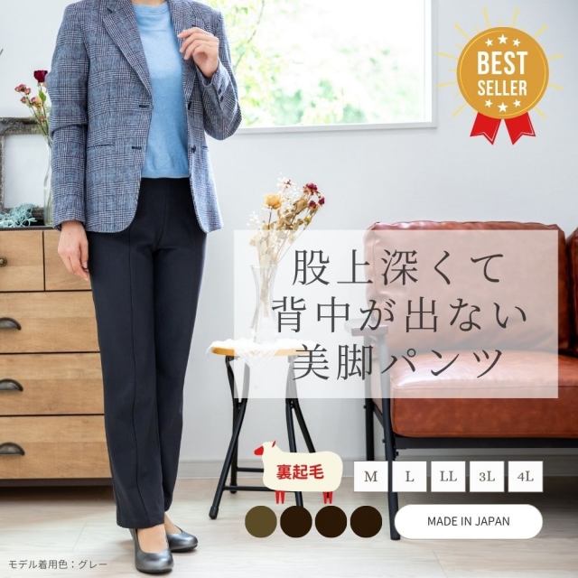 かがんでも背中が出にくく安心できる穿きごこちです。