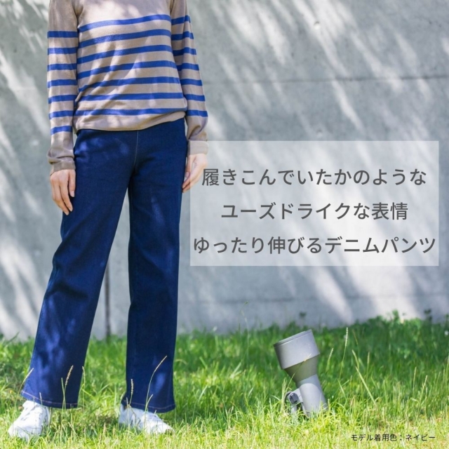 綿100%のデニムに比べて軽く、ポリウレタンが入っていることで座った時もつっぱる感じがありません。