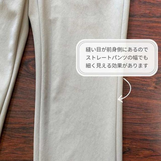 スリムパンツに見えて幅はストレートパンツの寸法。つまりゆったり穿けるのに細見えします。