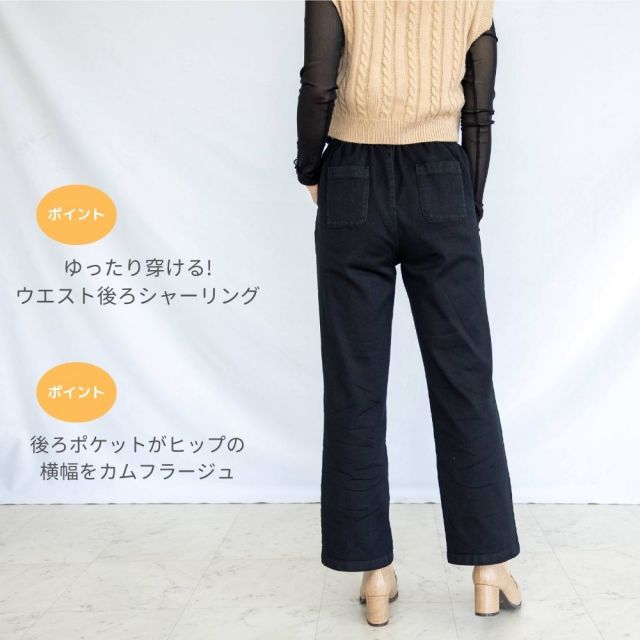 感 想 Mサイズでもゆったり穿けました。ヒップからふくらはぎまでゆとりがあります。センターラインがきれいに見えるので洒落見えしておでかけにおすすめのデニムパンツです。