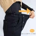 椅子に座っても、かがんでも背中が出にくいので安心できる穿きごこちです。