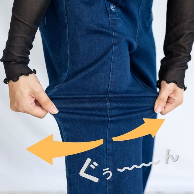 長年穿き込んだような風合いの高見えデニム。ポリウレタンが入っていることでタテ・ヨコにしっかり伸びます。