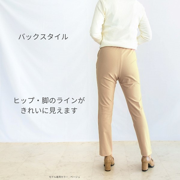ヒップ部分にはダーツが入っており立体的で上向きの小尻に。後ろにポケットはついていません。