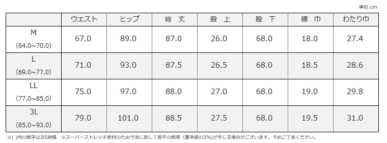 ようえもんショップのパンツはどれも基本的に股上が深いことで多くのお客様から喜んでいただいております。