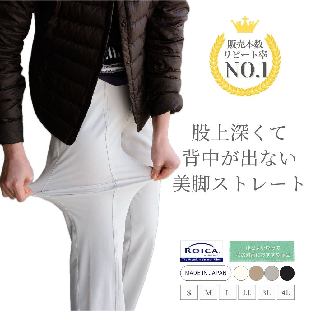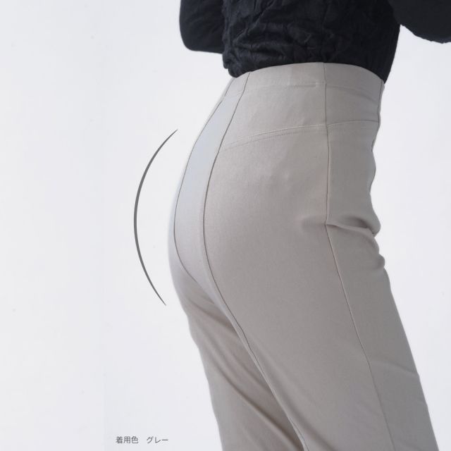 肉感を拾わないストレートシルエットでどんな体型の方も穿くだけで美脚に。