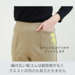 ウエスト分部に入っている平ゴムはこだわりの柔らかさと丈夫さで長く使用できる[オペロンソフト]