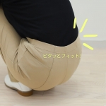 椅子に座っても、かがんでも背中が出にくいので安心できる穿きごこちです。