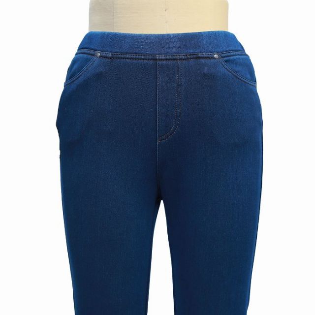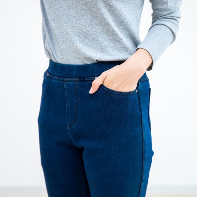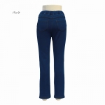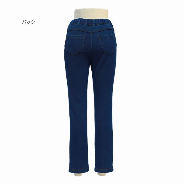 表地は風合いのいいデニム調の生地、裏地はソフトフリース生地のスリムパンツです。
