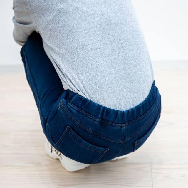 股上も深くおへそのあたりまであるので生地がウエスト・ヒップをすっぽり包み込みます。