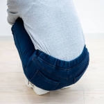 ウエストの後ろ身にはシャーリングが入っているので分厚い生地ですが締めつけ感なし。穿きぐちが大きく開いてヒップが入りやすいです。