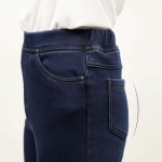 表地は風合いのいいデニム調の生地、裏地はソフトフリース生地のスリムパンツです。