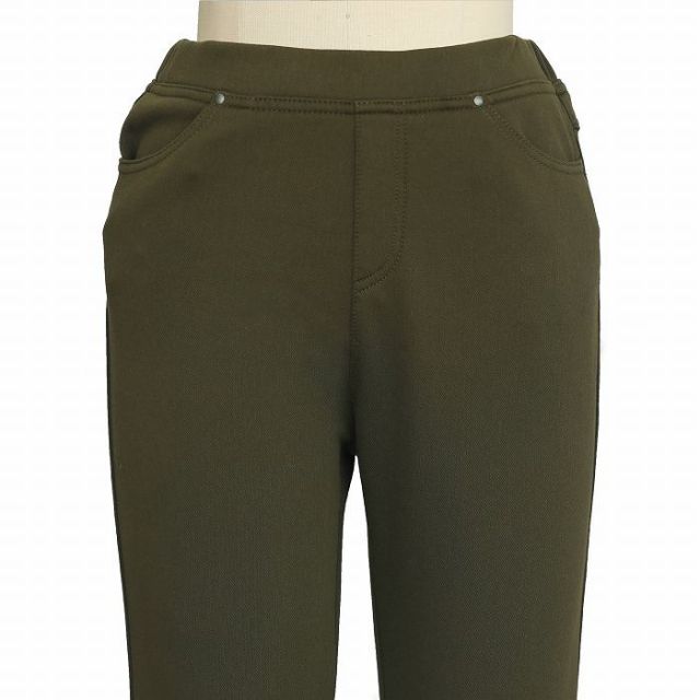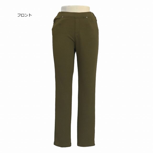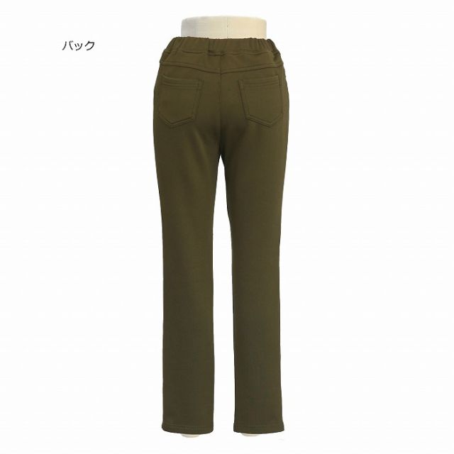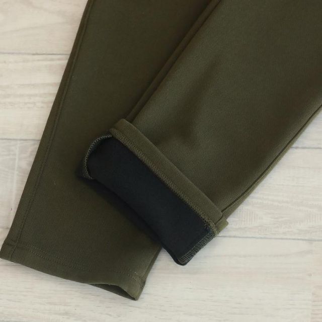 表地は綿混のカジュアルなカラーパンツ、裏地は暖かいフリースのボンディングのスリムパンツです。