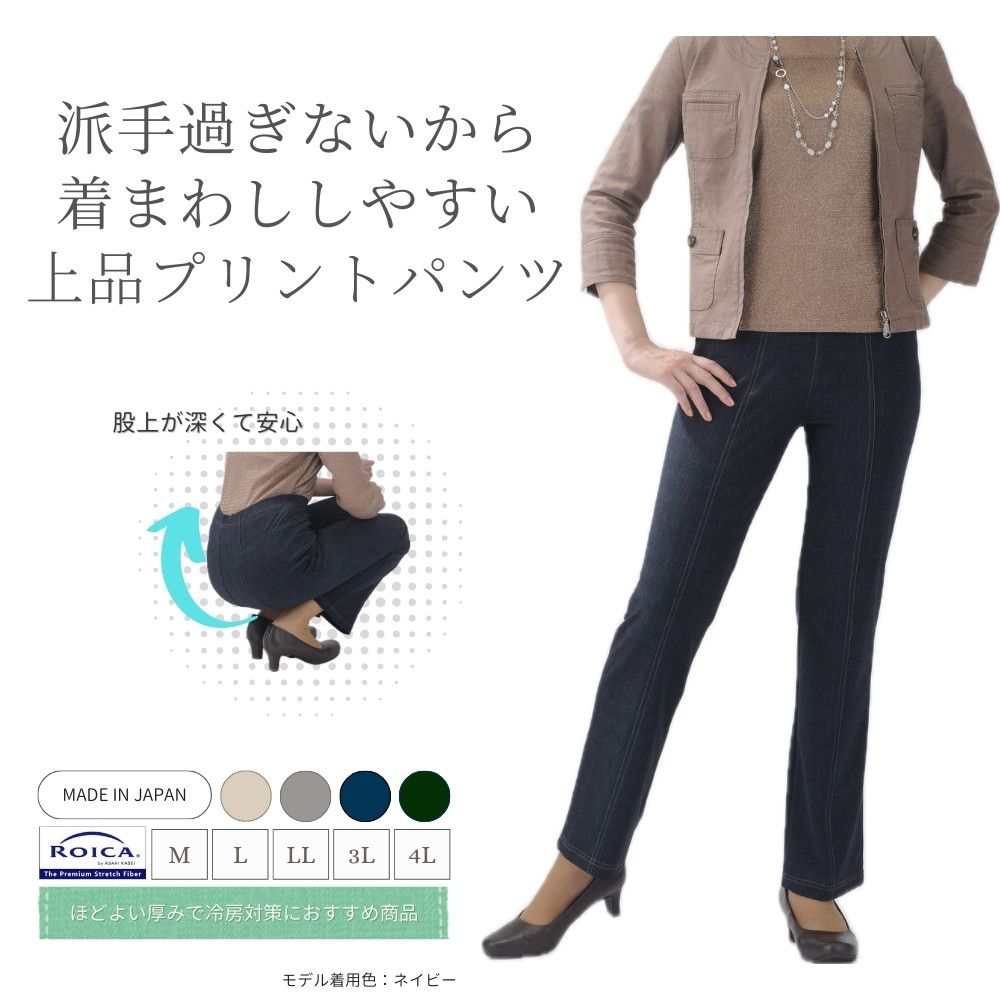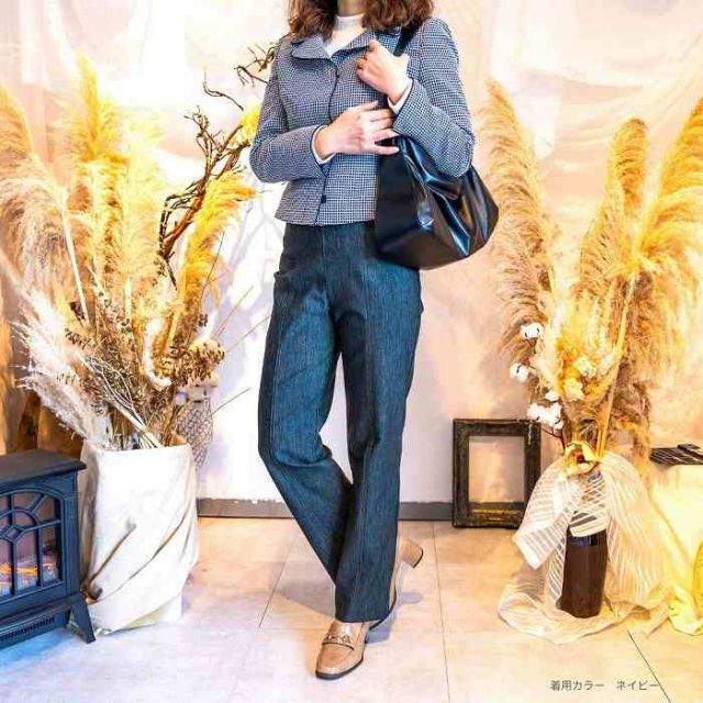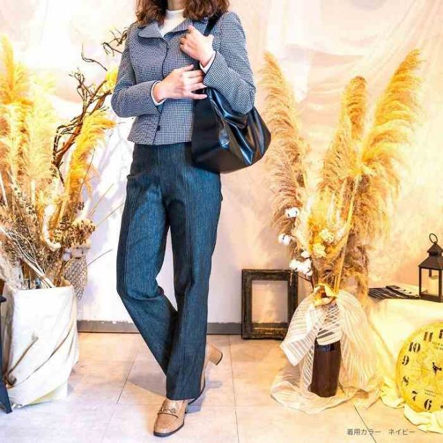 肉感を拾わないストレートシルエットでどんな体型の方も穿くだけで美脚に。