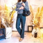 パンツの中で、一番美脚効果の高いアイテムと言えば、写真のようなセンターにライン入りのパンツ。