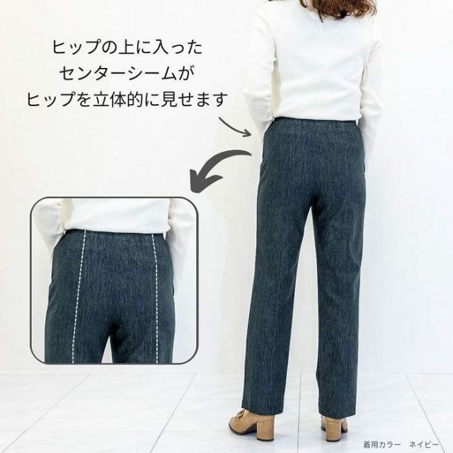 前後のセンターシームは脚を真っ直ぐ、長く見せる効果があります。