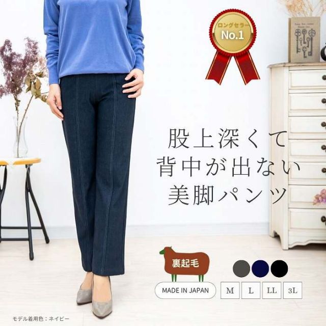 肉感を拾わないストレートシルエットでどんな体型の方も穿くだけで美脚に。