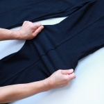 ヒップ部分にセンターシームがはいっていることで横幅を目立たなくして立体的な小尻に。